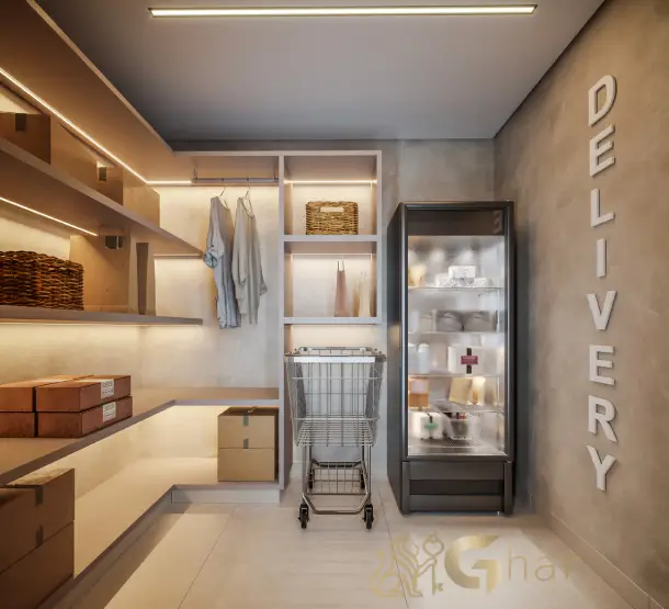 Área preparada para receber e armazenar entregas de encomendas, compras e refeições, mesmo quando o morador não está em casa. Garante segurança, comodidade e preservação dos itens até a retirada.