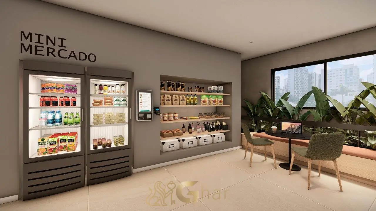 • Lavanderia compartilhada e mini market (market fit).