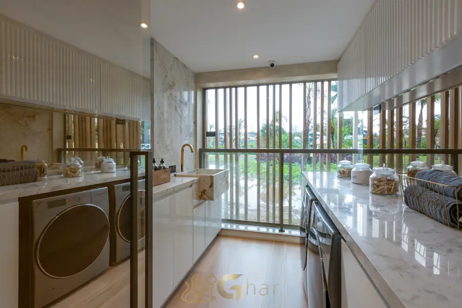 Ambiente exclusivo para tarefas domésticas, isolado dos demais cômodos. Proporciona organização, privacidade e maior praticidade no dia a dia da residência.