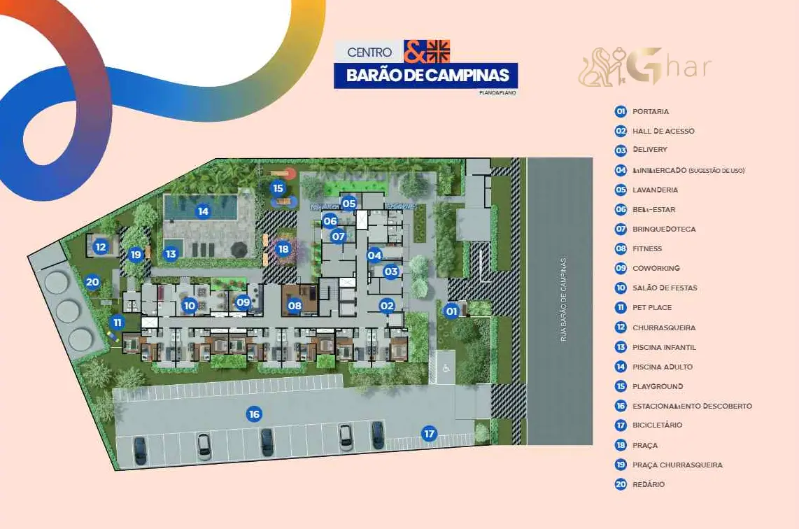 O condomínio Centro&Barão de Campinas conta com uma infraestrutura completa de lazer, convivência e bem-estar, proporcionando mais qualidade de vida aos moradores. Entre os espaços disponíveis estão áreas planejadas para relaxamento, atividades físicas e momentos de lazer com família e amigos, criando um ambiente agradável dentro do próprio condomínio.
