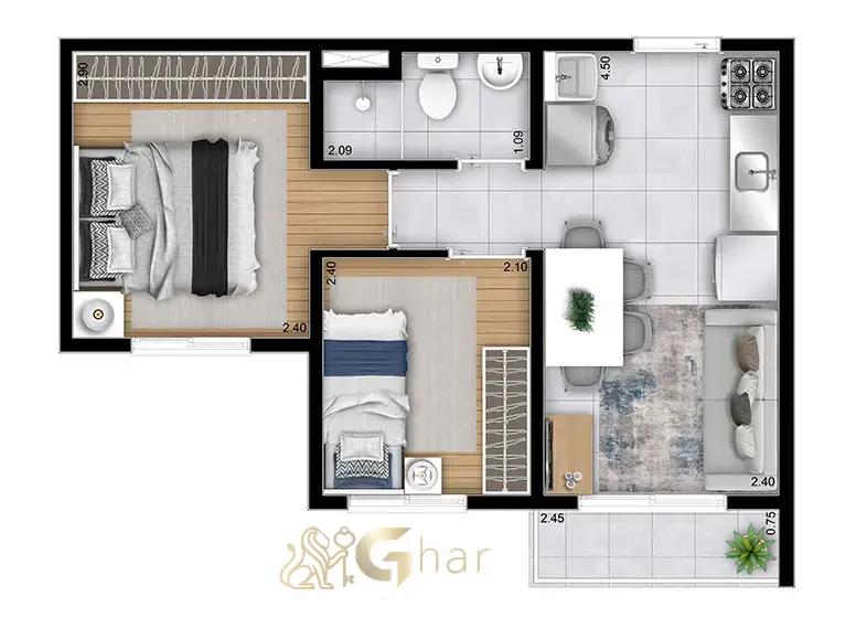 As plantas do Plano&Guaianases foram desenvolvidas para oferecer apartamentos compactos, funcionais e bem distribuídos, ideais para quem busca praticidade no dia a dia.
