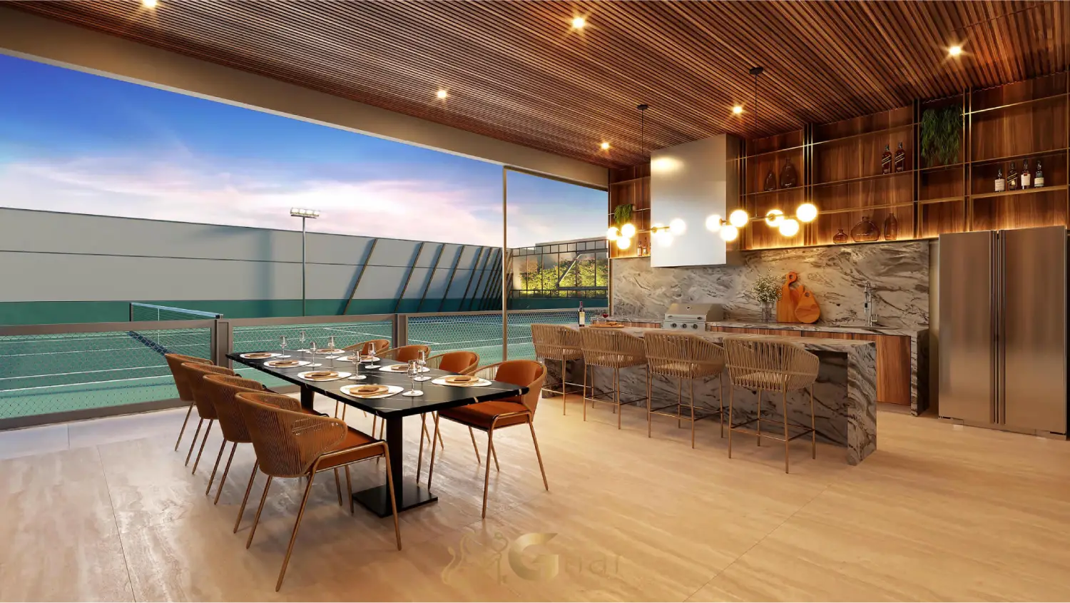 O condomínio oferece lazer completo com opções para toda a família: quadra de tênis by Lisonda, fitness by Life Fitness, piscina de 20m, spa com hidromassagem, salão de festas, espaço gourmet, brinquedoteca e pet place. Ambientes que unem bem-estar, saúde e convivência social em um só endereço.