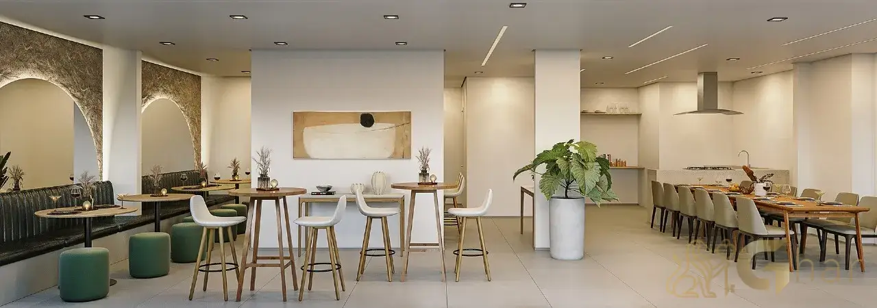 Todas as imagens têm caráter meramente ilustrativo e não constituem oferta de produto ou serviço. Em fotos de decorados, perspectivas artísticas e plantas com sugestão de decoração, os materiais efetivamente entregues seguem o memorial descritivo. Mobiliário, equipamentos, objetos de decoração, pisos, rodapés, louças, metais, molduras, forros, sancas e pontos de iluminação não integram o contrato de aquisição, salvo indicação expressa em documento comercial. Serviços de áreas comuns eventualmente citados dependem de deliberação em assembleia de condôminos. Os diferenciais mencionados podem não se aplicar a todas as unidades, ainda que de igual tipologia.