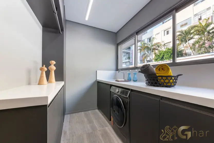 Ambiente exclusivo para tarefas domésticas, isolado dos demais cômodos. Proporciona organização, privacidade e maior praticidade no dia a dia da residência.