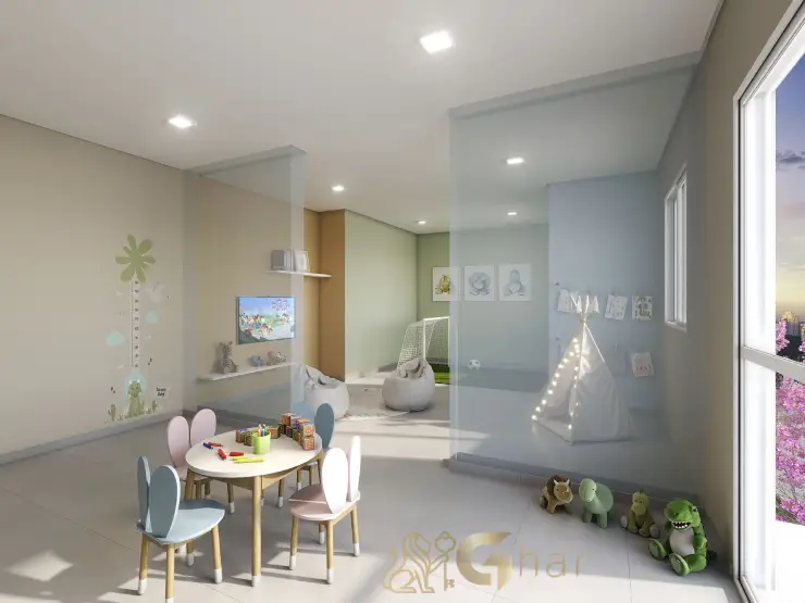 O condomínio oferece uma estrutura completa de lazer com piscina, salão de festas, churrasqueira, brinquedoteca, coworking, mini market e espaço pet, promovendo momentos de convivência e bem-estar sem sair de casa.