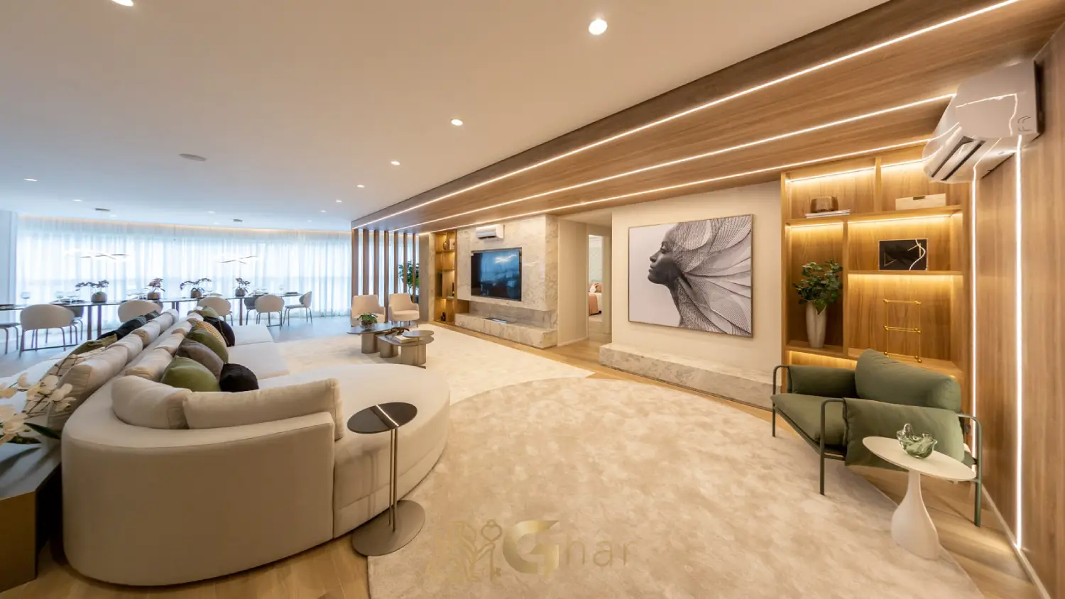 Cada detalhe dos apartamentos decorados do Bosque Cerejeiras reflete a proposta de exclusividade e elegância. Os projetos de interiores priorizam materiais nobres, acabamentos refinados e integração entre os espaços sociais e íntimos, criando um ambiente ideal tanto para receber convidados quanto para momentos de relaxamento em família. Essa experiência permite visualizar todo o potencial das plantas de 222 m² a 569 m², destacando o que há de melhor em design e conforto.