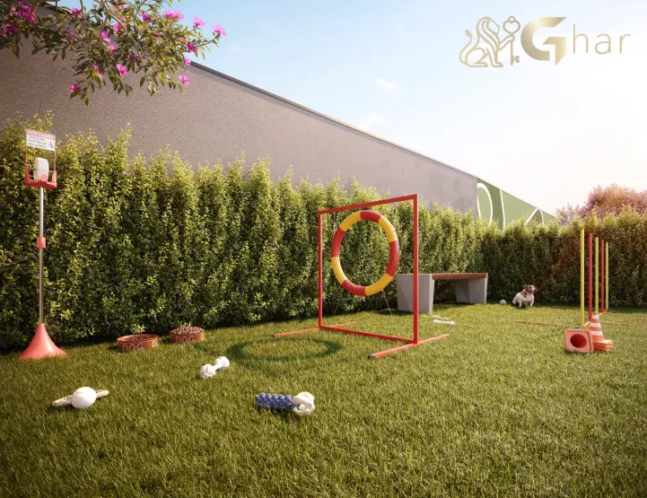 Área dedicada para cães e gatos, equipada com brinquedos, pistas de agility e espaços para socialização dos pets com segurança e comodidade.