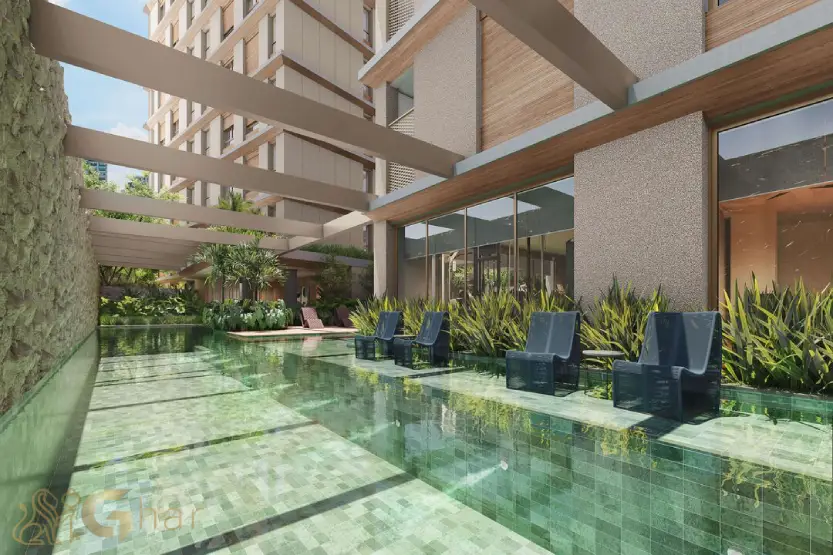 Cada espaço comum reforça o conceito de um condomínio residencial de luxo, pensado para o equilíbrio entre vida social, relaxamento e privacidade.