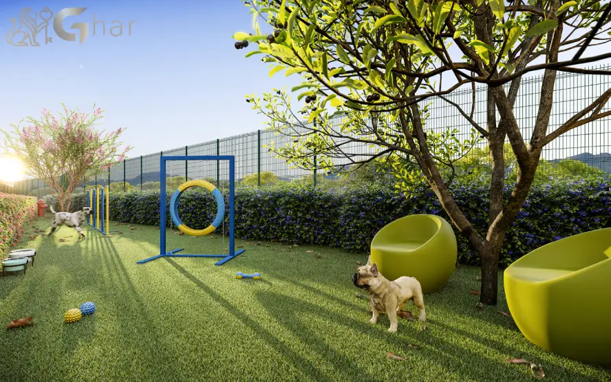 Área dedicada para cães e gatos, equipada com brinquedos, pistas de agility e espaços para socialização dos pets com segurança e comodidade.