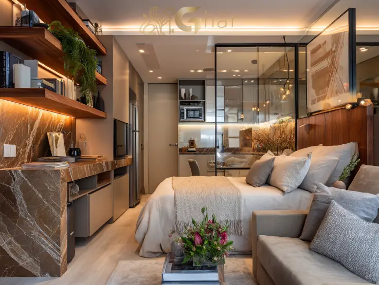 As unidades demonstram na prática como os studios foram planejados para otimizar espaço, integrar ambientes e oferecer funcionalidade, conforto e sofisticação, mesmo em metragens compactas.