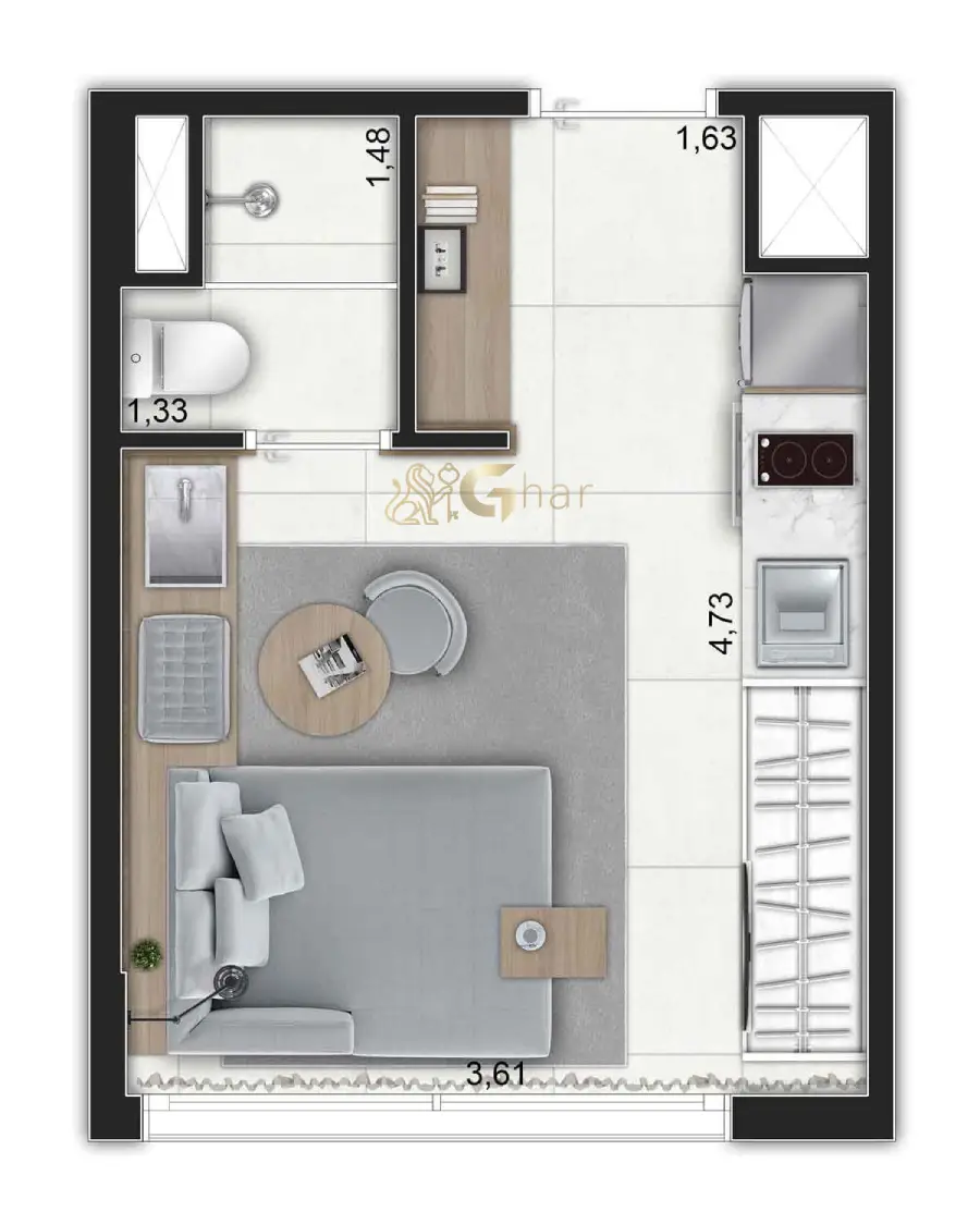 • Studios modernos com plantas inteligentes de 20 e 26 m².