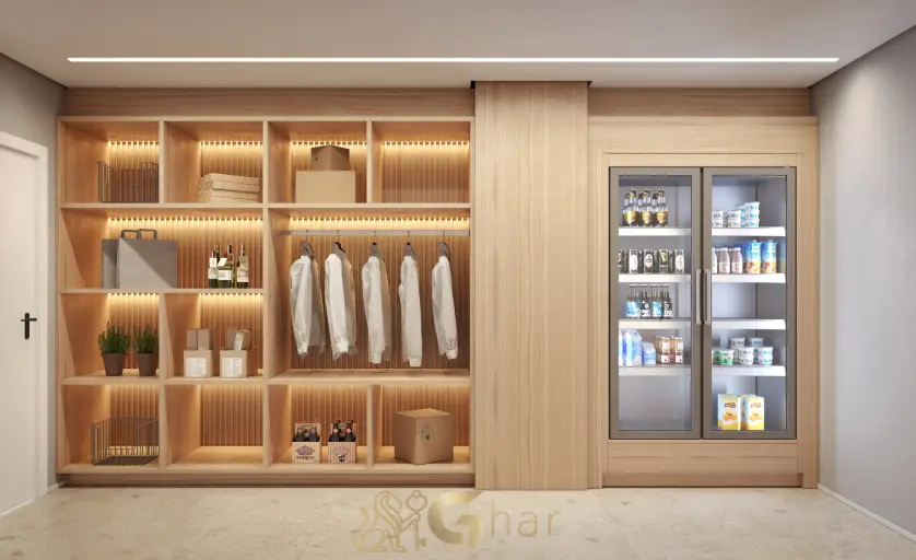 Espaço reservado próximo à cozinha ou área de serviço, perfeito para armazenar mantimentos, utensílios e produtos de limpeza, mantendo tudo organizado e acessível.
