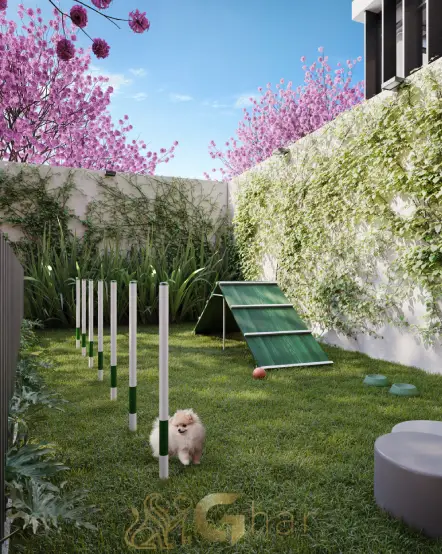 Área dedicada para cães e gatos, equipada com brinquedos, pistas de agility e espaços para socialização dos pets com segurança e comodidade.
