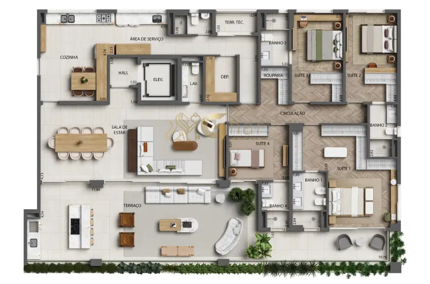 As plantas do Monã The Grand Lodge foram desenvolvidas para atender diferentes perfis de moradores, oferecendo flexibilidade, conforto e excelente aproveitamento dos espaços. Com metragens que variam de 172 m² a 569 m², o projeto conta com apartamentos tipo, gardens e duplex, sempre com suítes amplas, living integrado, terraço generoso e acabamentos de alto padrão.