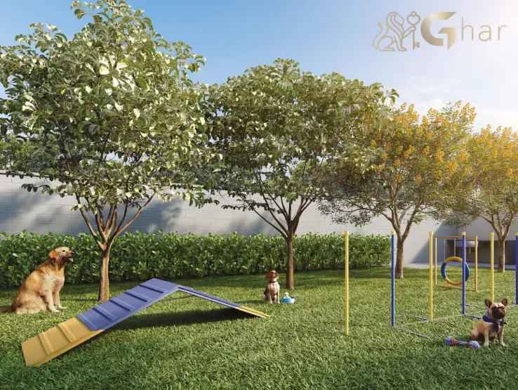 Área dedicada para cães e gatos, equipada com brinquedos, pistas de agility e espaços para socialização dos pets com segurança e comodidade.