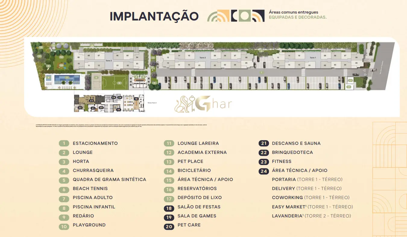 Avisos importantes – Ghar – Os preços exibidos nesta página referem-se ao menor valor disponível na tabela do mês para a tipologia indicada e podem ser alterados a qualquer momento pela construtora/incorporadora, sem aviso prévio. A disponibilidade das unidades também pode mudar; confirme diretamente com um corretor parceiro credenciado. Tributos e despesas de aquisição (ITBI, escritura e registro), bem como custos e condições de financiamento, não estão incluídos nos valores apresentados e são de responsabilidade do adquirente.