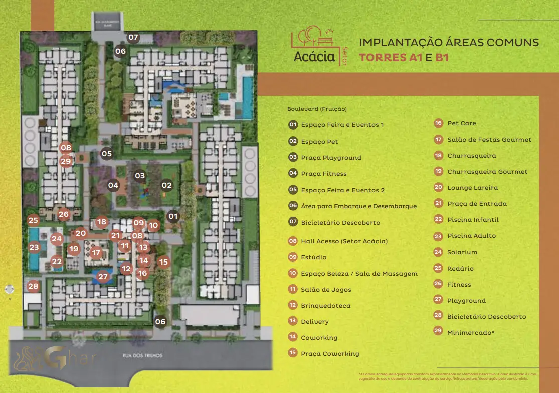 Avisos importantes – Ghar – Os preços exibidos nesta página referem-se ao menor valor disponível na tabela do mês para a tipologia indicada e podem ser alterados a qualquer momento pela construtora/incorporadora, sem aviso prévio. A disponibilidade das unidades também pode mudar; confirme diretamente com um corretor parceiro credenciado. Tributos e despesas de aquisição (ITBI, escritura e registro), bem como custos e condições de financiamento, não estão incluídos nos valores apresentados e são de responsabilidade do adquirente.