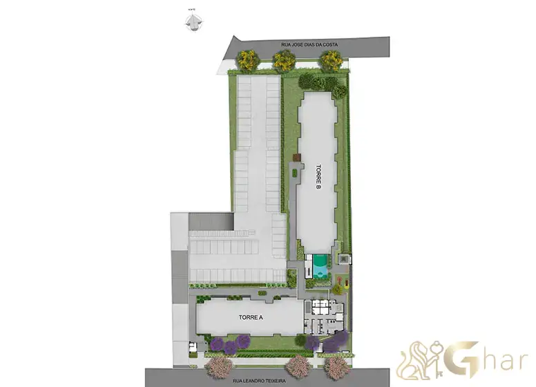 A Torre A possui térreo, 11 e 17 pavimentos, além de dois pavimentos inferiores destinados ao lazer, enquanto a Torre B conta com térreo, 16 pavimentos e lazer localizado na cobertura (rooftop), ampliando as opções de convivência e bem-estar.
