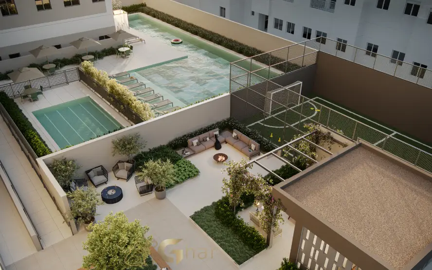 Espaços planejados para oferecer múltiplas opções de diversão e descanso, incluindo piscinas, salão de festas, academia, playground e áreas ao ar livre, atendendo todas as idades e estilos de vida.
