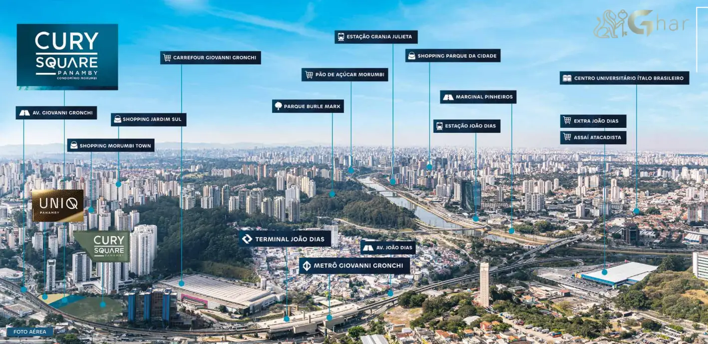 O Cury Square Panamby está localizado na Avenida Giovanni Gronchi, um dos principais eixos da Zona Sul de São Paulo, oferecendo mobilidade urbana, conectividade e conveniência para quem deseja morar bem ou investir em um apartamento no Panamby.