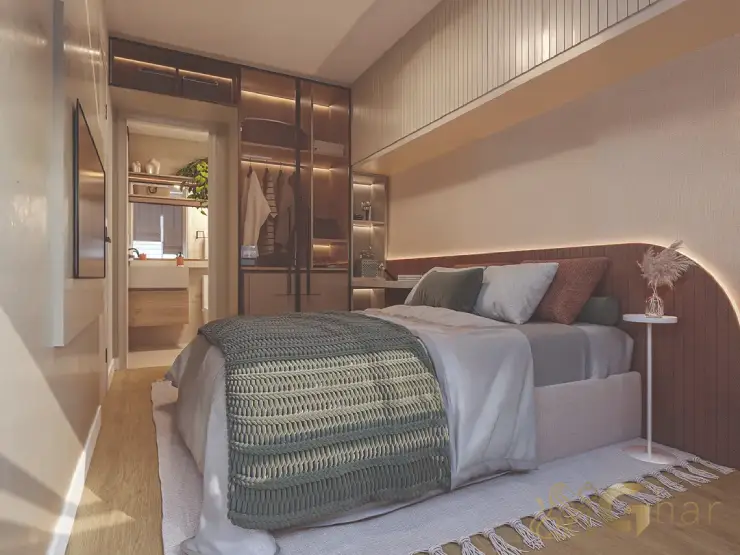 Todas as imagens têm caráter meramente ilustrativo e não constituem oferta de produto ou serviço. Em fotos de decorados, perspectivas artísticas e plantas com sugestão de decoração, os materiais efetivamente entregues seguem o memorial descritivo. Mobiliário, equipamentos, objetos de decoração, pisos, rodapés, louças, metais, molduras, forros, sancas e pontos de iluminação não integram o contrato de aquisição, salvo indicação expressa em documento comercial. Serviços de áreas comuns eventualmente citados dependem de deliberação em assembleia de condôminos. Os diferenciais mencionados podem não se aplicar a todas as unidades, ainda que de igual tipologia.