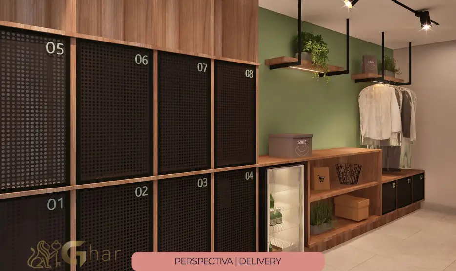 Área preparada para receber e armazenar entregas de encomendas, compras e refeições, mesmo quando o morador não está em casa. Garante segurança, comodidade e preservação dos itens até a retirada.