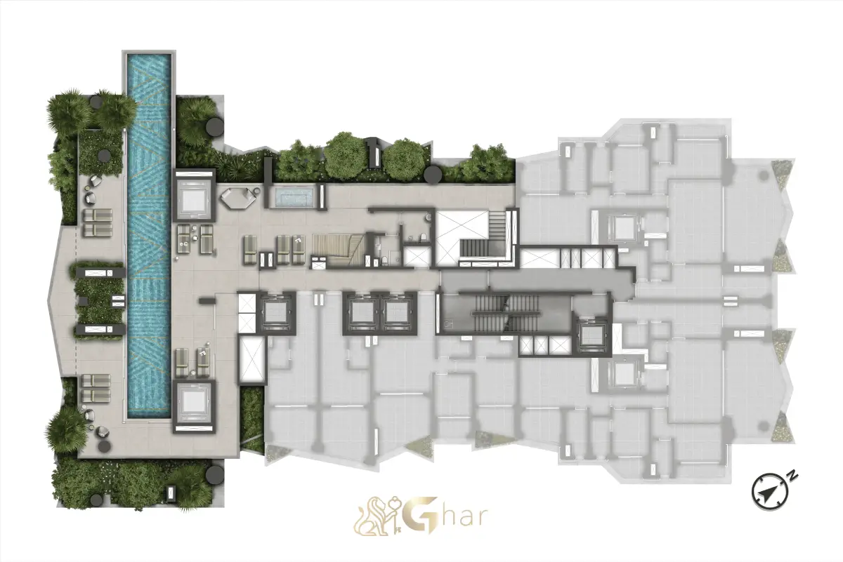 As plantas das áreas comuns revelam um projeto que distribui o lazer verticalizado ao longo de vários pavimentos, criando experiências únicas para os moradores. Entre eles estão quadras esportivas, piscinas panorâmicas, academia completa, sauna, spa, salão de festas, coworking e o exclusivo rooftop lounge, planejados para promover qualidade de vida, convivência, praticidade e exclusividade no dia a dia.