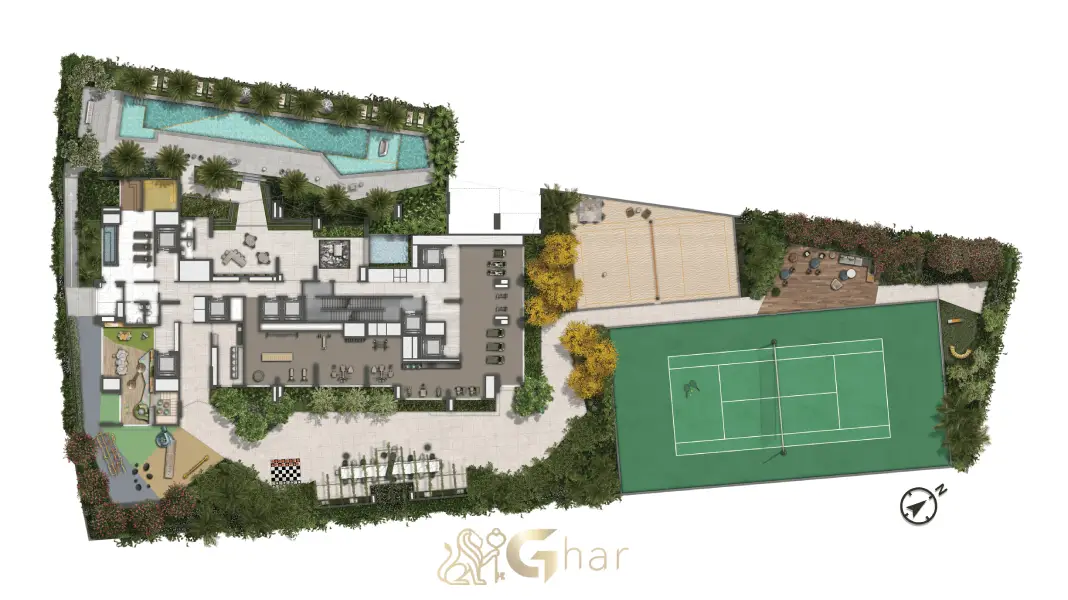 Entre os principais diferenciais estão lazer completo em níveis elevados, incluindo piscina coberta, piscina descoberta, quadra de tênis, quadra de beach tennis, fitness de alto desempenho, sauna, spa, salão de festas, lounge bar, coworking, lavanderia, espaço pet e áreas modernas de convivência para todas as idades.