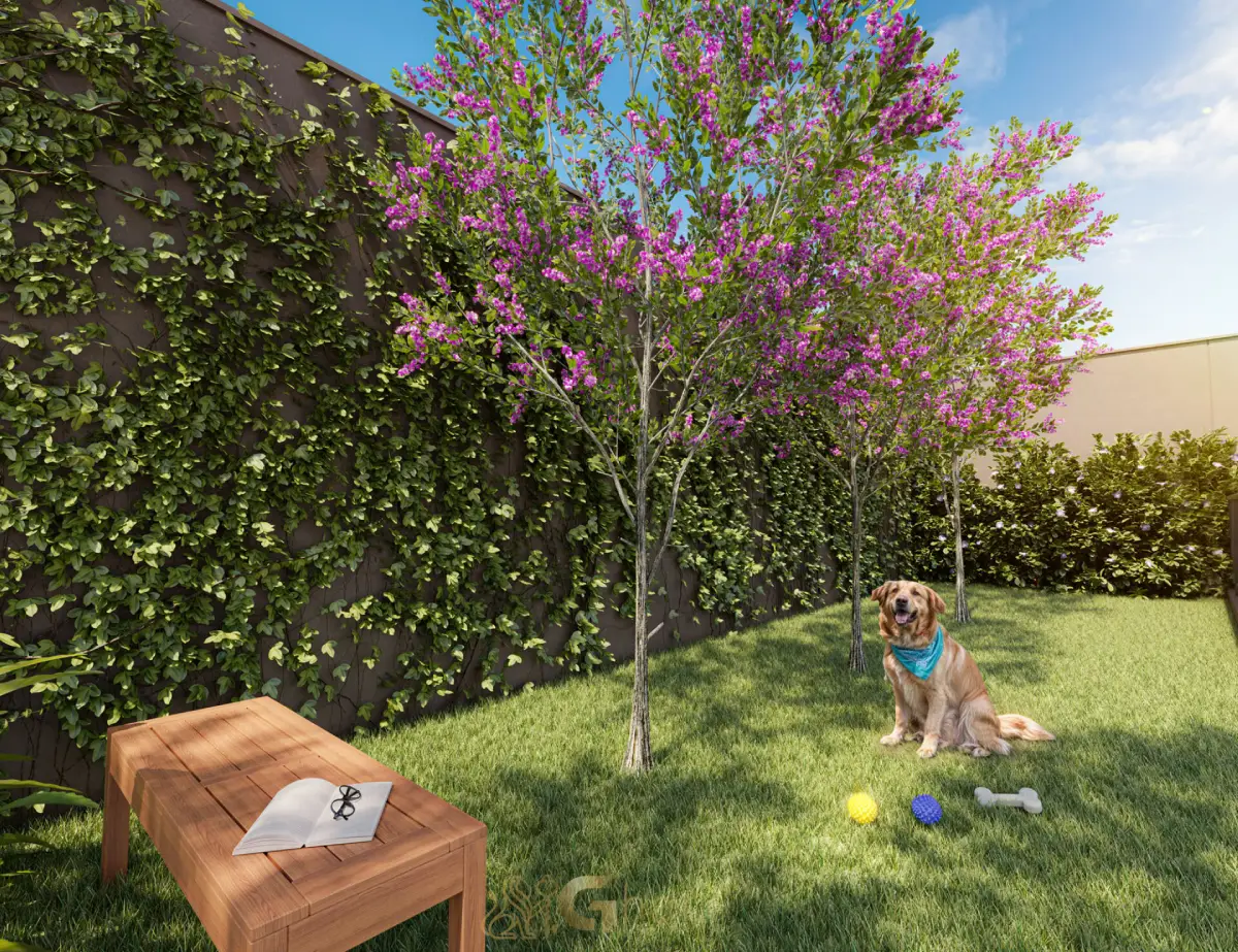 Área dedicada para cães e gatos, equipada com brinquedos, pistas de agility e espaços para socialização dos pets com segurança e comodidade.