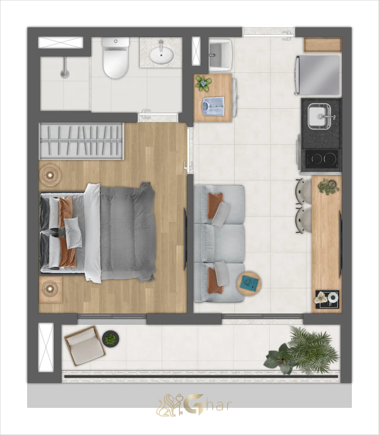 Os apartamentos do Joá Pinheiros possuem metragens entre 24 m² e 29 m², com opções de studios e 1 dormitório com terraço. Todas as plantas foram projetadas para oferecer funcionalidade, conforto e modernidade, ideais tanto para morar quanto para investir.