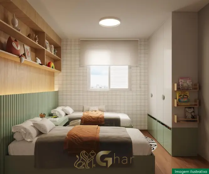 Todas as imagens têm caráter meramente ilustrativo e não constituem oferta de produto ou serviço. Em fotos de decorados, perspectivas artísticas e plantas com sugestão de decoração, os materiais efetivamente entregues seguem o memorial descritivo. Mobiliário, equipamentos, objetos de decoração, pisos, rodapés, louças, metais, molduras, forros, sancas e pontos de iluminação não integram o contrato de aquisição, salvo indicação expressa em documento comercial. Serviços de áreas comuns eventualmente citados dependem de deliberação em assembleia de condôminos. Os diferenciais mencionados podem não se aplicar a todas as unidades, ainda que de igual tipologia.