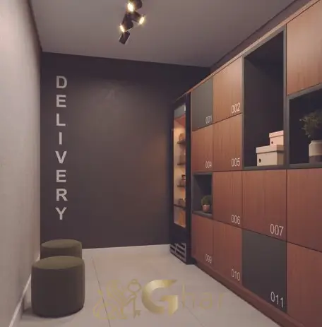 Área preparada para receber e armazenar entregas de encomendas, compras e refeições, mesmo quando o morador não está em casa. Garante segurança, comodidade e preservação dos itens até a retirada.