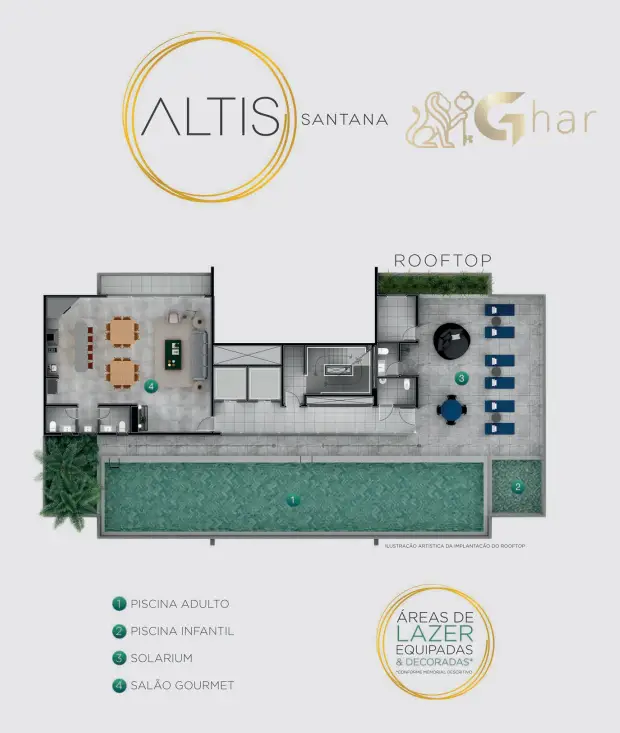 As plantas das áreas de convivência do Altis Santana foram projetadas para criar um condomínio completo e bem distribuído, com espaços voltados para lazer, convivência e bem-estar dos moradores.