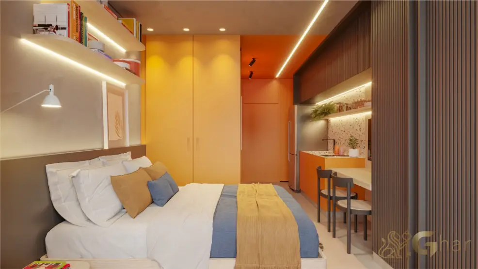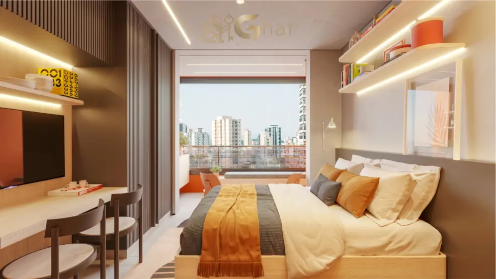 Os studios e apartamentos de 1 suíte apresentam layouts inteligentes, integração entre ambientes e soluções modernas de aproveitamento de espaço, proporcionando uma experiência de moradia prática e eficiente.