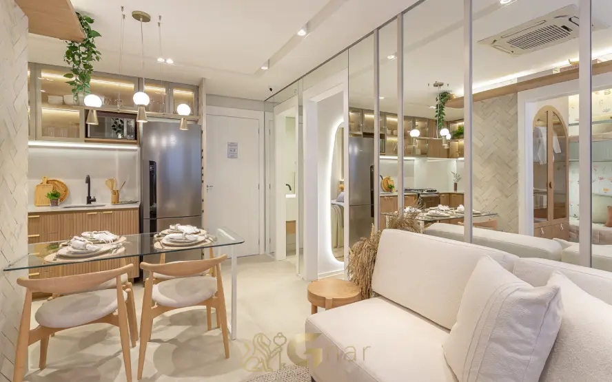 Os apartamentos decorados em Santo Amaro apresentam soluções modernas de layout, integração entre sala, cozinha e terraço, além de ambientes bem iluminados e funcionais. Cada detalhe foi projetado para proporcionar conforto no dia a dia, sem abrir mão da estética e da eficiência dos espaços.