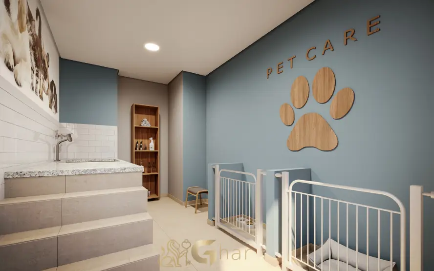 Área dedicada para cães e gatos, equipada com brinquedos, pistas de agility e espaços para socialização dos pets com segurança e comodidade.