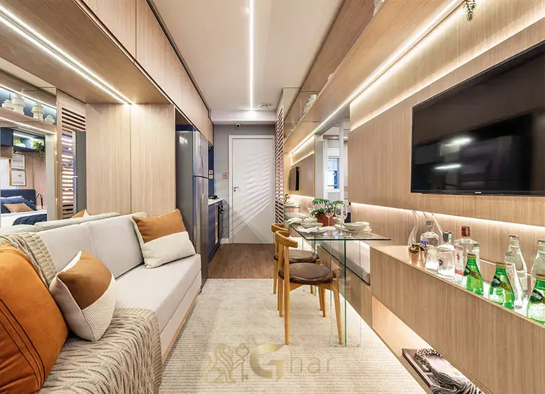 A visita aos decorados é a melhor forma de entender o aproveitamento inteligente dos espaços, o padrão de acabamento e as soluções pensadas para o dia a dia em apartamentos compactos e modernos.