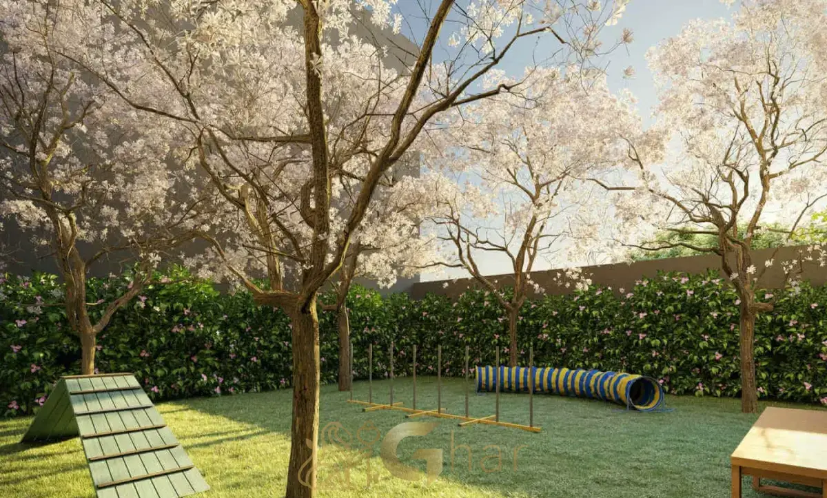 Área dedicada para cães e gatos, equipada com brinquedos, pistas de agility e espaços para socialização dos pets com segurança e comodidade.