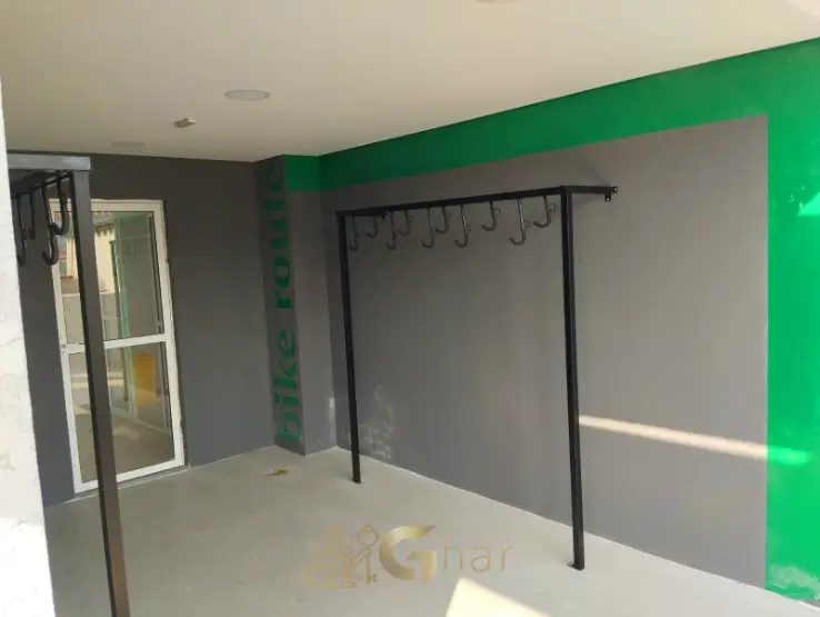 Estacionamento interno exclusivo para bicicletas, equipado com suportes e, em alguns casos, estação de manutenção, incentivando a mobilidade sustentável e saudável.