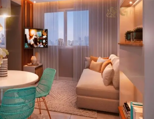 Todas as imagens têm caráter meramente ilustrativo e não constituem oferta de produto ou serviço. Em fotos de decorados, perspectivas artísticas e plantas com sugestão de decoração, os materiais efetivamente entregues seguem o memorial descritivo. Mobiliário, equipamentos, objetos de decoração, pisos, rodapés, louças, metais, molduras, forros, sancas e pontos de iluminação não integram o contrato de aquisição, salvo indicação expressa em documento comercial. Serviços de áreas comuns eventualmente citados dependem de deliberação em assembleia de condôminos. Os diferenciais mencionados podem não se aplicar a todas as unidades, ainda que de igual tipologia.
