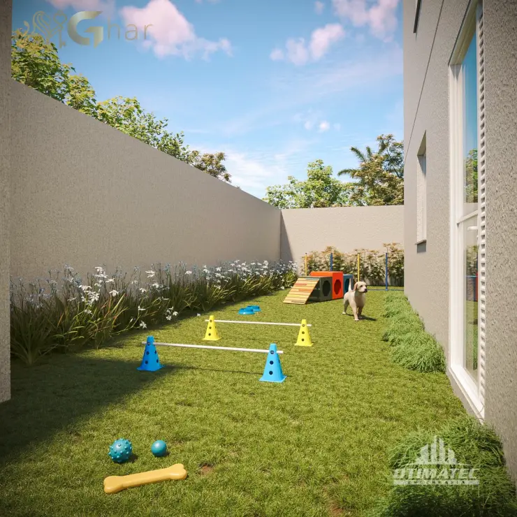 Área dedicada para cães e gatos, equipada com brinquedos, pistas de agility e espaços para socialização dos pets com segurança e comodidade.