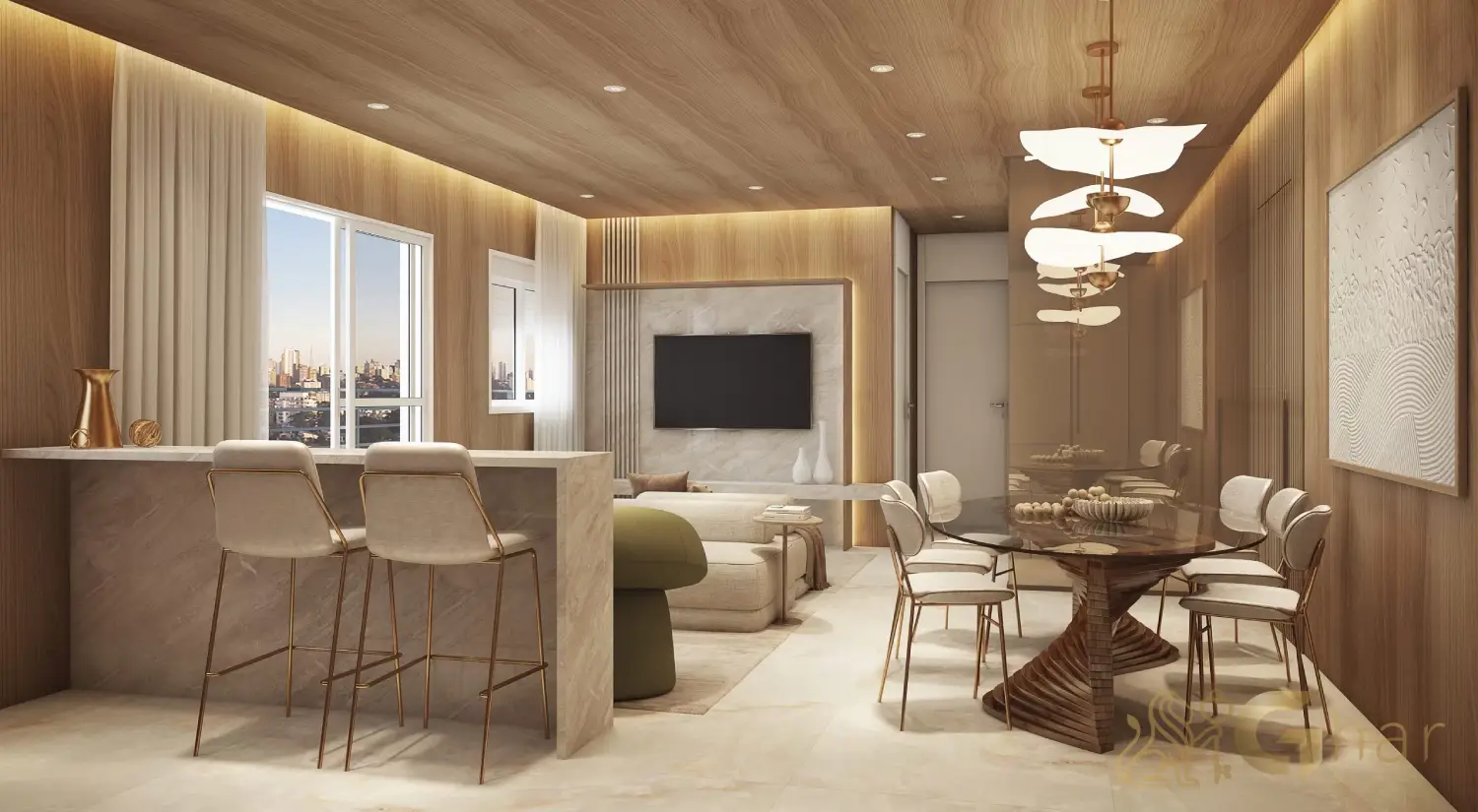 Ambientes como a sala de estar ampliada, cozinhas integradas e varandas modernas oferecem o equilíbrio perfeito entre praticidade e sofisticação, tornando o apartamento ideal tanto para moradia própria quanto para investimento imobiliário.