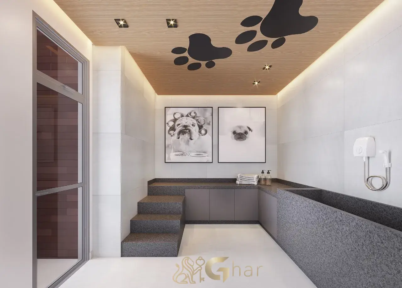 Área dedicada para cães e gatos, equipada com brinquedos, pistas de agility e espaços para socialização dos pets com segurança e comodidade.