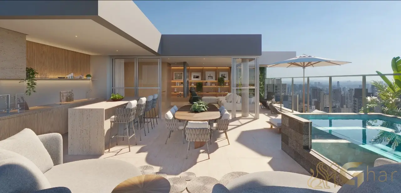 Apartamentos localizados na cobertura, com plantas amplas, terraços privativos, vista privilegiada e, muitas vezes, lazer exclusivo como piscinas ou áreas gourmet.