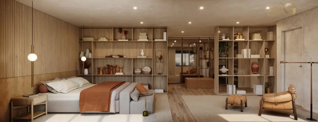 Com projeto de interiores da Suíte Arquitetos, os decorados evidenciam layout versátil (opções de sala ampliada e home office), padrões de marcenaria que valorizam o uso do espaço e banho master com dimensões generosas. O resultado é um apartamento que combina design, privacidade e circulação fluida, pronto para receber diferentes estilos de vida.