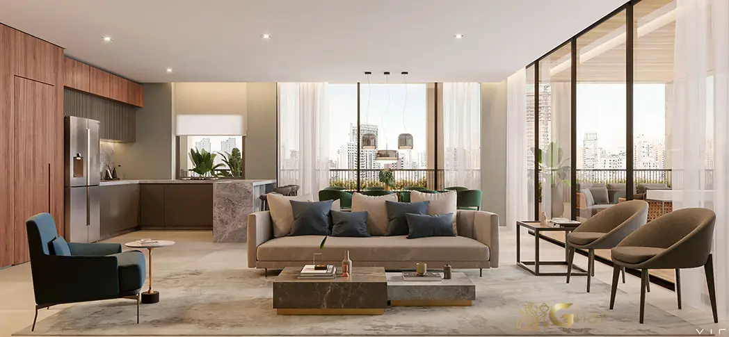 Nos decorados do Helio 454, os moradores encontram salas integradas, suítes espaçosas e varandas amplas com vista privilegiada. O projeto de interiores assinado por João Armentano valoriza linhas contemporâneas, o uso de materiais nobres e a criação de espaços acolhedores e sofisticados, refletindo o estilo único da Vila Nova Conceição.