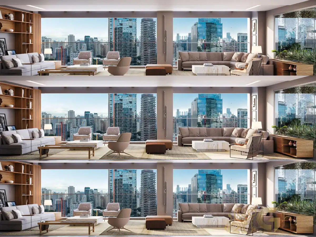 Todas as imagens têm caráter meramente ilustrativo e não constituem oferta de produto ou serviço. Em fotos de decorados, perspectivas artísticas e plantas com sugestão de decoração, os materiais efetivamente entregues seguem o memorial descritivo. Mobiliário, equipamentos, objetos de decoração, pisos, rodapés, louças, metais, molduras, forros, sancas e pontos de iluminação não integram o contrato de aquisição, salvo indicação expressa em documento comercial. Serviços de áreas comuns eventualmente citados dependem de deliberação em assembleia de condôminos. Os diferenciais mencionados podem não se aplicar a todas as unidades, ainda que de igual tipologia.