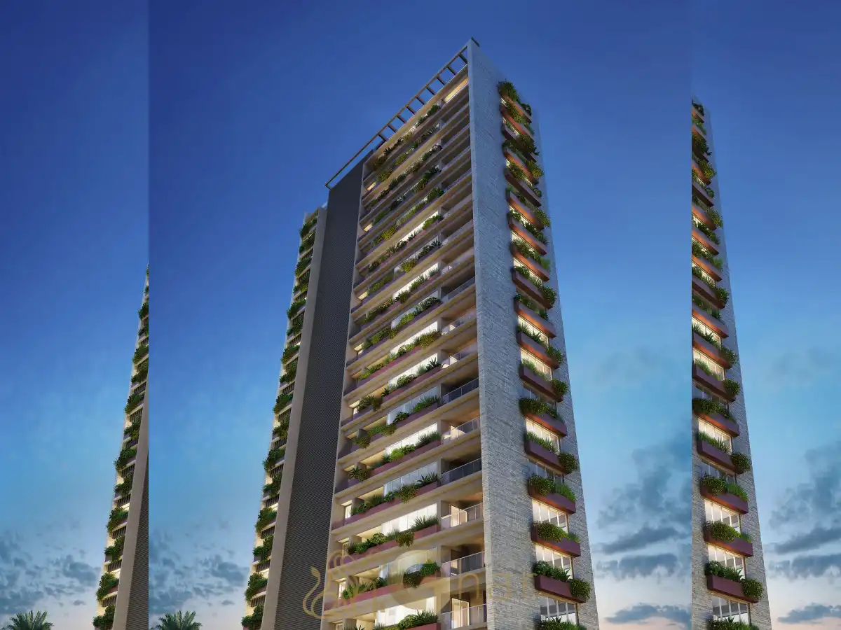 A arquitetura valoriza integração do living ao terraço, piso nivelado entre sala e varanda e terraço em todos os dormitórios (conforme projeto), ampliando iluminação, vista e ventilação. A cozinha dialoga com a área social e a área de serviço preserva a funcionalidade. Com 3 vagas por apartamento (conforme unidade) e opções de terraço técnico, o conjunto equilibra elegância, privacidade e personalização.